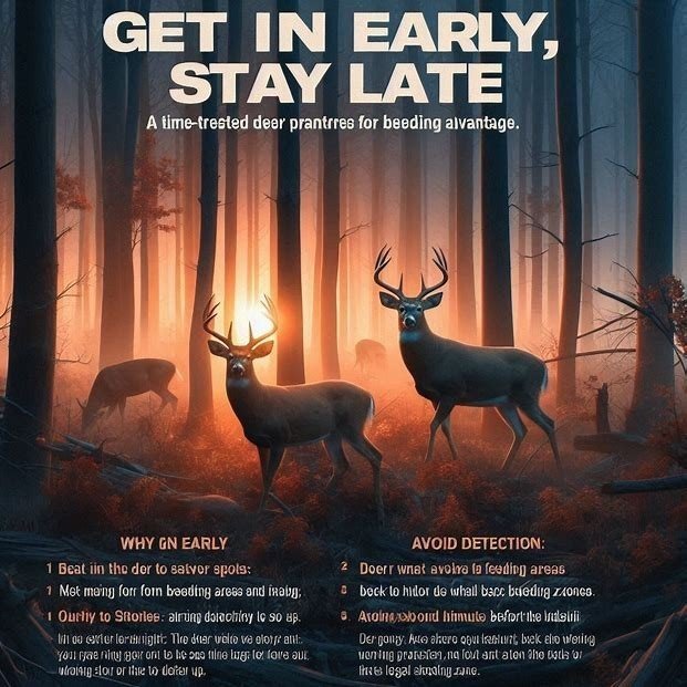 Get In Early, Stay Late is a time-tested deer hunting strategy that plays into deer movement patterns and hunter advantage. Here's how to make the most of it: