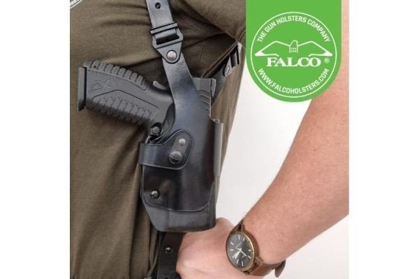 Vertical hybrid leather/Kydex shoulder holster fit for multiple handguns with double mag pouch The roto (rotating) function of the holster allows for a more efficient and comfortable gun draw Holster combines 0.08” U.S. Kydex custom fit to your firearm, surrounded by premium FALCO Italian full-grain leather Features leather forefinger security strap Tension screw allows you to adjust the retention of the holster Vertical underarm carry position allows for safe EDC concealment Adjustable shoulder harness is tapered for weight distribution and comfort Attaches to the belt with adjustable leather tie-down straps for added stability Optics ready with RDS cutouts Ideal for large-framed firearms Open muzzle allows for extended threaded barrels and prevents the accumulation of dust and dirt Fully-covered barrel and trigger guard for safe handling Kydex shell offers excellent retention in all carry situations Premium leather is hand-cut, lacquered, and finished by leather artisans Edge is hand-finished and colored to protect it from wear and add to the longevity Includes: adjustable leather harness, hybrid Kydex/leather holster and double magazine pouch, leather tie-down straps Right-handed or left-handed Lifetime Limited Warranty 30-Day Buyback Guarantee MSRP: $299.95For more information about FALCO Holsters, visit FALCOHolsters.com. Follow on social media on Facebook, Instagram, YouTube, and Twitter.