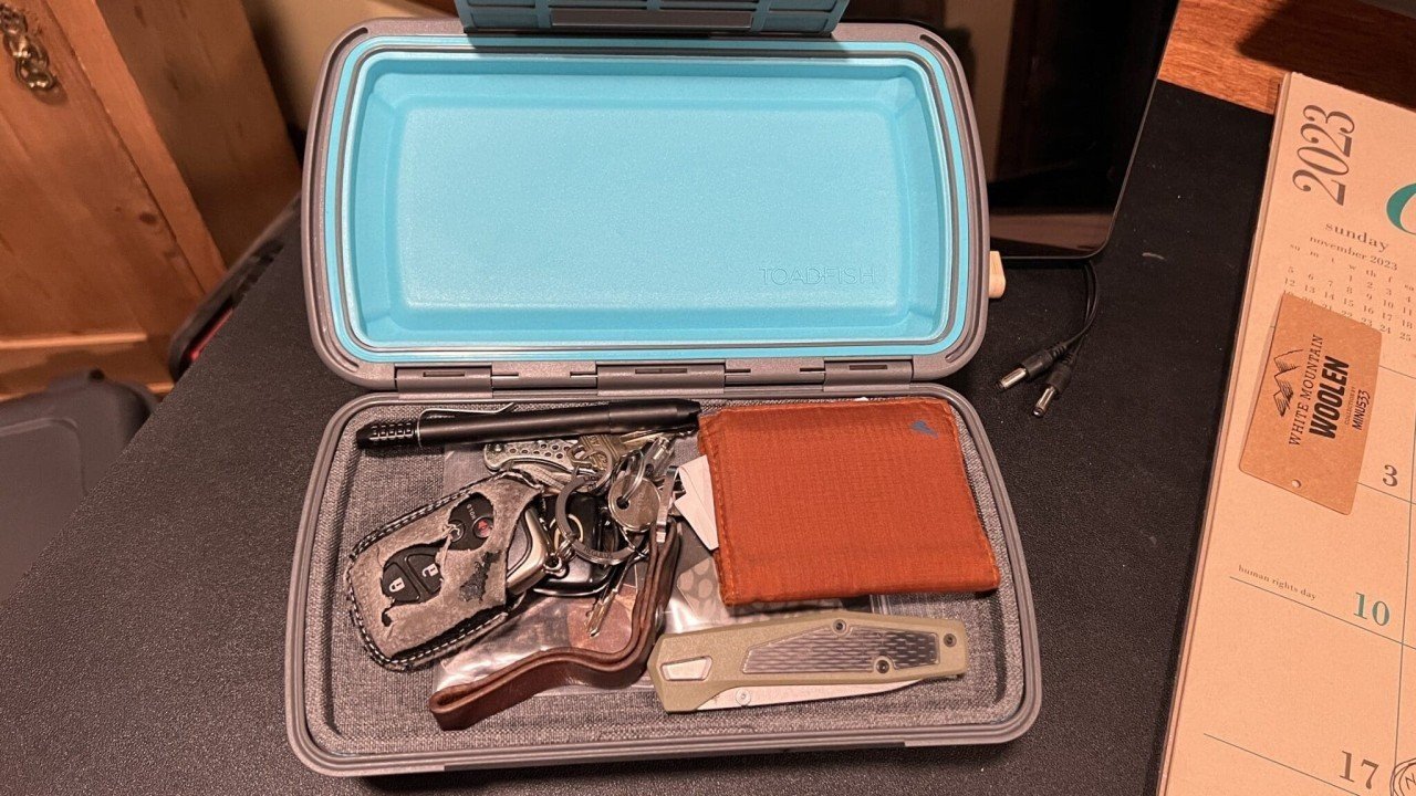 When this first came in it sat on my desk for a good 30 days. I was trying to figure out how I was going to utilize it. I currently don’t own a boat so the opportunity to test it out fishing wasn’t going to happen for me. However this dry box has become integrated into my kit pretty quickly. I have started using this for electronics, an extra battery, sunglasses, headphones and a spare knife. I take this on road trips and hunting trips especially when I know the environment is going to be incredibly dusty. I can take the Toadfish dry box and slide it under the passenger seat to keep my electronics safe when I leave. I wish this had a small lock built into it but since I slide it under the seat and almost no one knows it is there, it is generally as safe as my glove box.