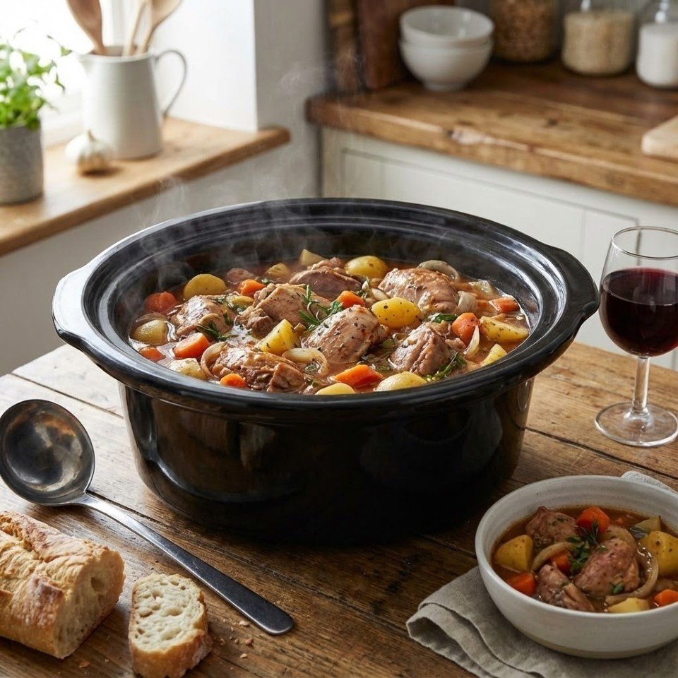 This recipe is perfect for a comforting, easy meal. The slow cooker tenderizes the rabbit and blends the flavors beautifully.