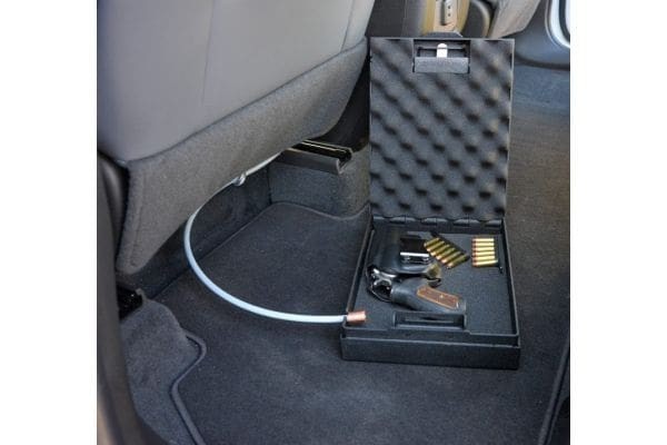 The Fast Access Pistol Box features a push button Genuine Simplex lock for fast access without electronics or batteries or keys. This pistol box was built for travel with easily going from nightstand to vehicle, to the hotel room. Formed and welded entirely from heavy duty 12-gauge steel, it’s engineered for security, usability and portability with the ability to secure the Fast Access Pistol Box with Steelhead’s signature 3’ long, 6,000 lb. rated, ¼” galvanized cable with 5/16” coating. No competitor offers a security cable this strong. The Fast Access Pistol Box measures 8.5” wide x 12.25” long x 3” tall and weighs just under 15 lbs. Suggested retail $300.
