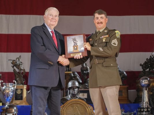 CAMP PERRY, Ohio – With his consistent top scores on the range during the Civilian Marksmanship Program’s 2023 National Trophy Rifle Matches, Staff Sgt. Ben Cleland, 30, of the U.S. Army Marksmanship Unit (USAMU), earned the Mountain Man Trophy for the second consecutive year. The award is a culmination of repeated excellence in the President’s, National Trophy Individual (NTI) and National Trophy Team (NTT) events and a sought after recognition at the annual National Matches – especially by Cleland himself.